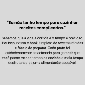 Ingredientes acessíveis: Usamos ingredientes fáceis de encontrar, para que você possa preparar suas refeições sem complicações.